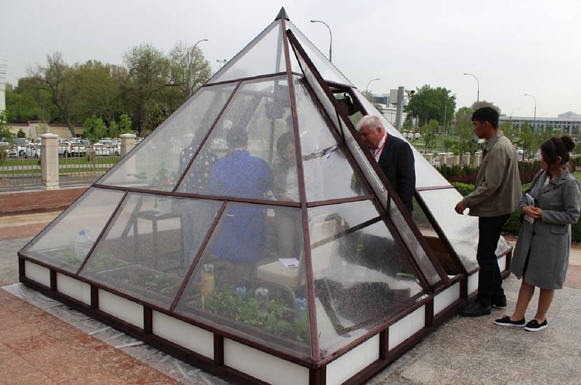 В теплице практикуют многоярусное расположение видов разных размеров, позволяя максимально использовать полезную площадь. Пирамида отбрасывает мало тени, поэтому не мешает соседним культурам. Мобильную конструкцию легко перенести в другое место, не разбирая каркаса.