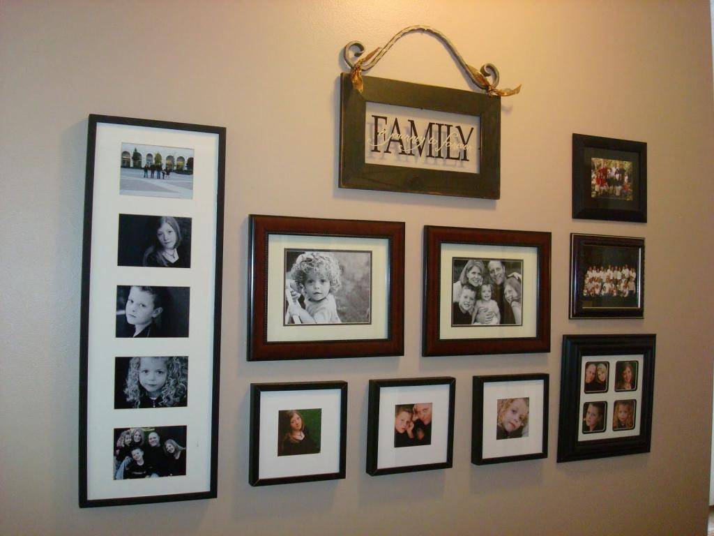 Кстати, большое количество фото на стене скроет заметные ее огрехи. Постарайтесь избегать больших отступов – в остальном все на ваше усмотрение.