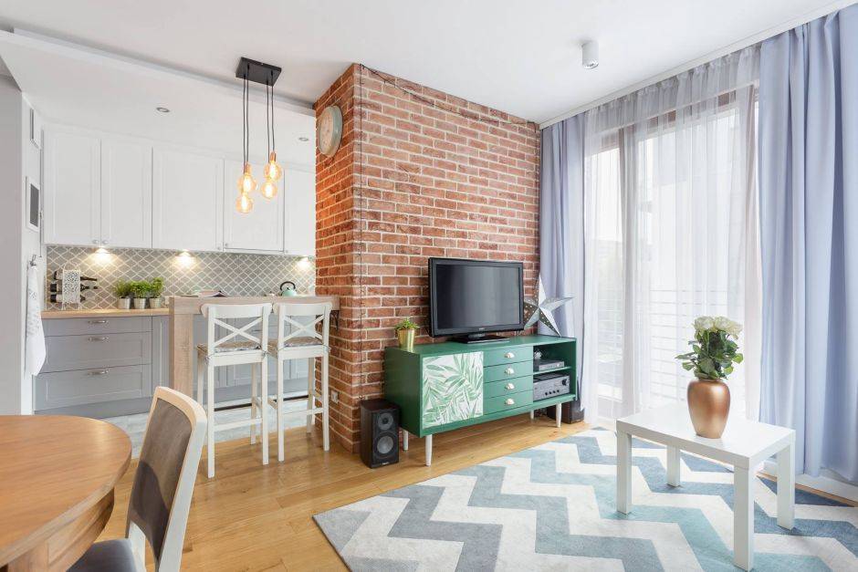 Если вы хотите использовать кирпич на стене в гостиной, у вас есть два варианта — вы можете показать старую стену или положить кирпичную плитку на стену. Первое решение предназначено для людей, которые живут в историческом многоквартирном доме, бывших фабричных зданиях или в другом месте с историей. После открытия кирпич должен быть тщательно очищен и пропитан, но эффект определенно стоит усилий.