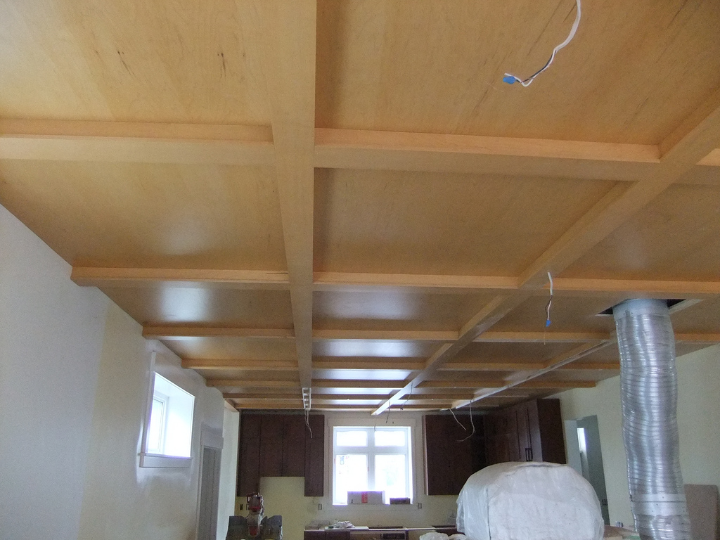 Если потолочная поверхность в дальнейшем будет подвергаться отделке, окрашиваться или тонироваться под облицовку из деревянного массива, то стыки и швы между покрытиями заделывают специальной пастой, приготовленной из окрашенной березовой стружки и масляного лака.