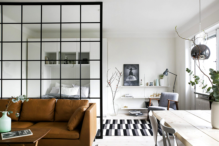 Это очень практичный вариант, который понравится переменчивым натурам. Переносные перегородки идеальны для зонирования ограниченного пространства.