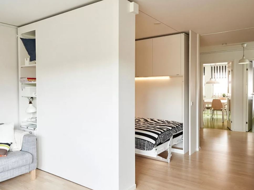 Вот такой вот необычный способ разделить гостиную и спальню