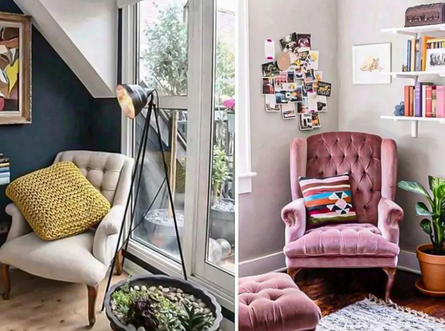 Кресло – как акцент часто используют для выделения зоны релакса, уголка для чтения, устанавливая рядом торшер, настольную лампу с журнальным или кофейным столиком.