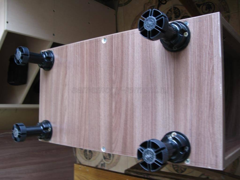 - Для крепления ножек к каркасу из дерева можно использовать саморезы.