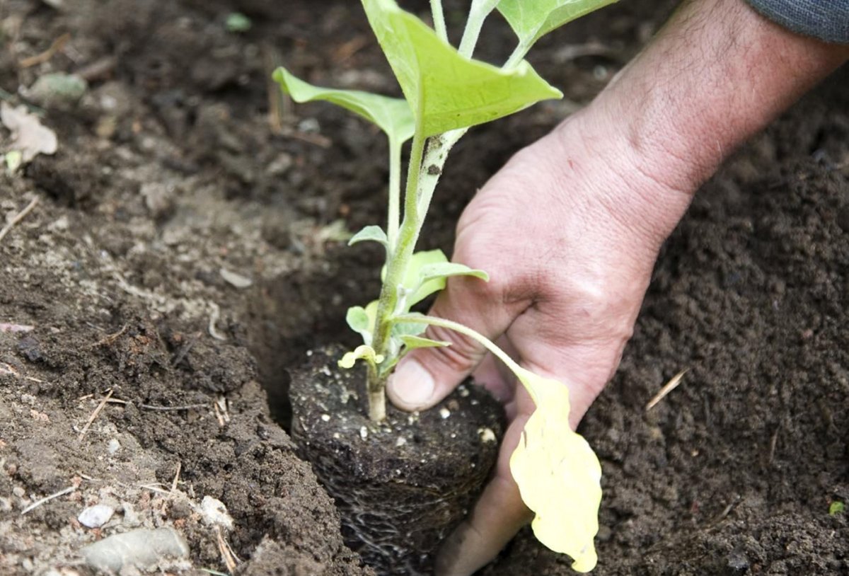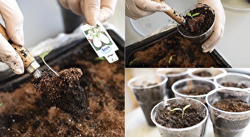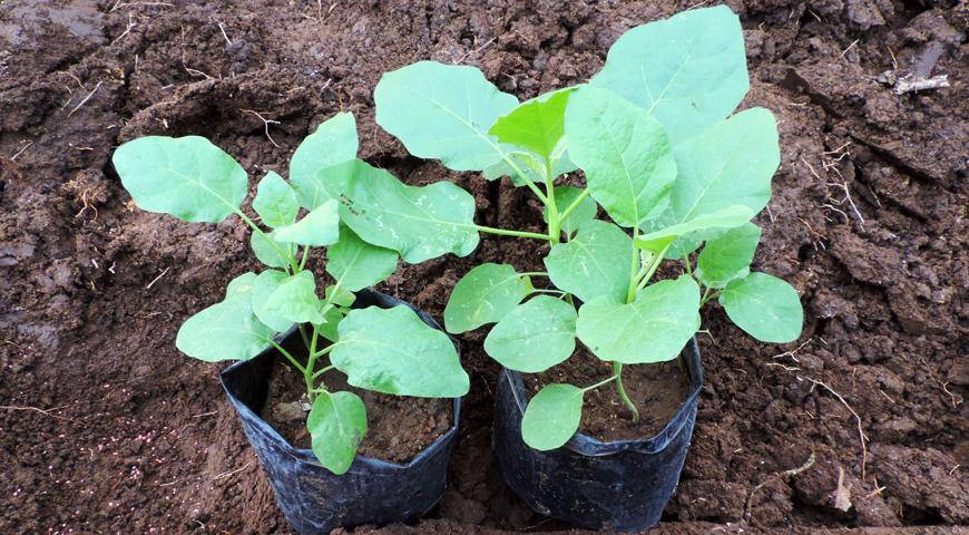 Рассаду баклажанов высаживают вместе с почвенным комом