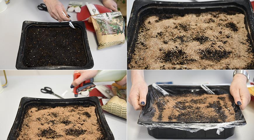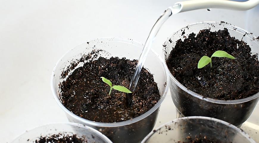 Для экономии места можно посеять в каждый горшочек по 2 семечка, а после прорастания удалить более слабый саженец.