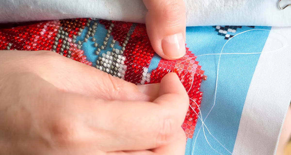 Сложная и кропотливая работа, требующая терпения, внимания. Потребуются: лоскут, клей, леска, бисеринки в палитре и размеров. Есть три способа воплотить шедевр из бусин: