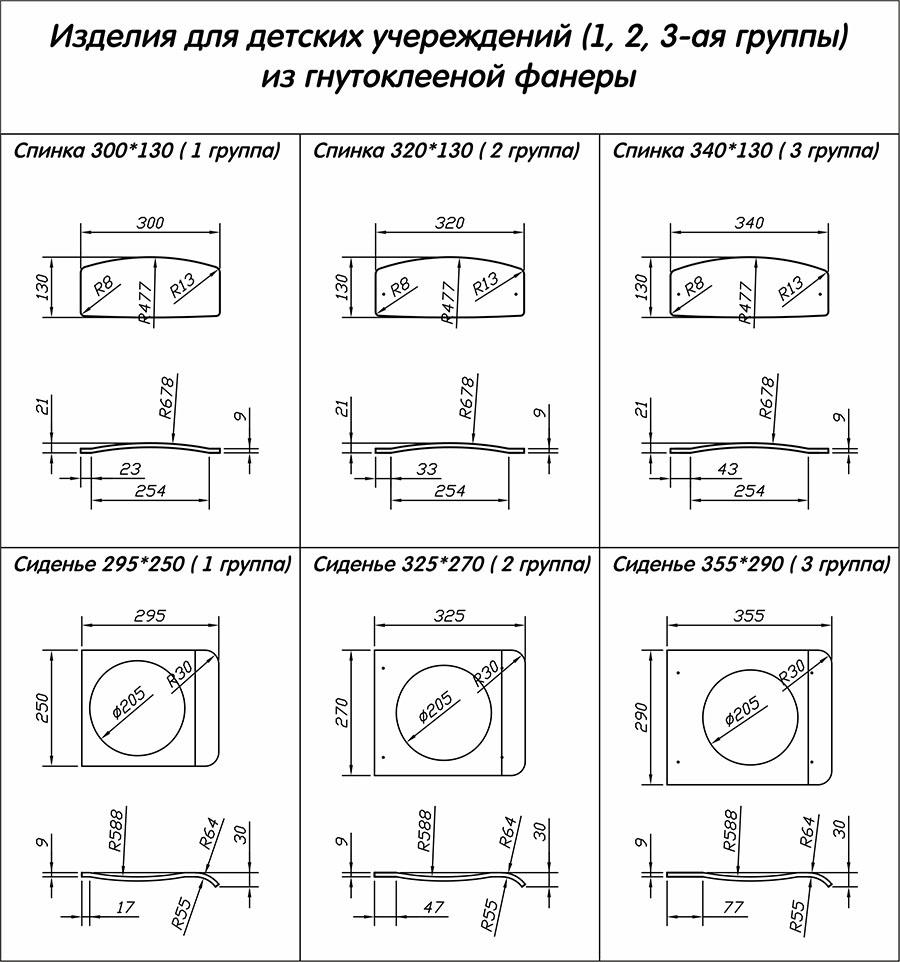 Разработана линейка гнутых деталей из фанеры для стульев: спинок и сидений. Срок производства 15-20 рабочих дней.