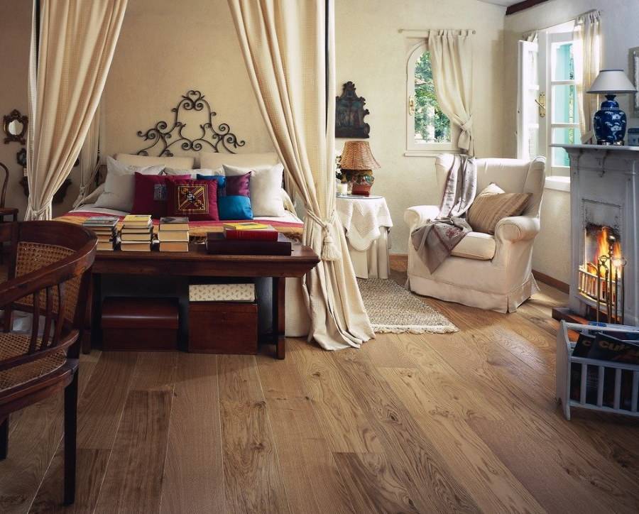 Натуральные пастельные тона, классические элементы декора (хрустальные люстры, лепнина) и природные материалы, соседствующие с современными. Яркая особенность — стеганая мебель из трикотажа капитоне и уютный камин.