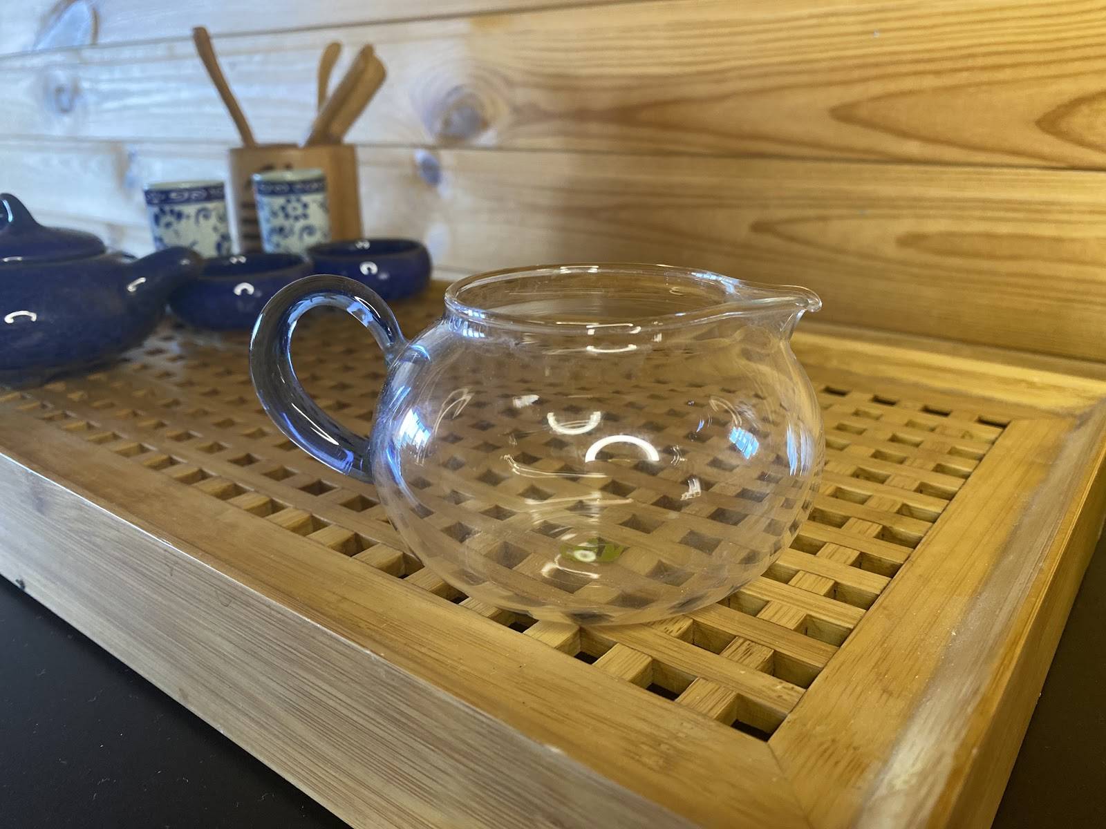 Сосуд «море чая» (чахай). Это маленький прозрачный кувшин. В него переливают чай из чайника перед тем, как разлить по пиалам. Чахай нужен, чтобы налить всем гостям чай одинаковой степени заваривания.