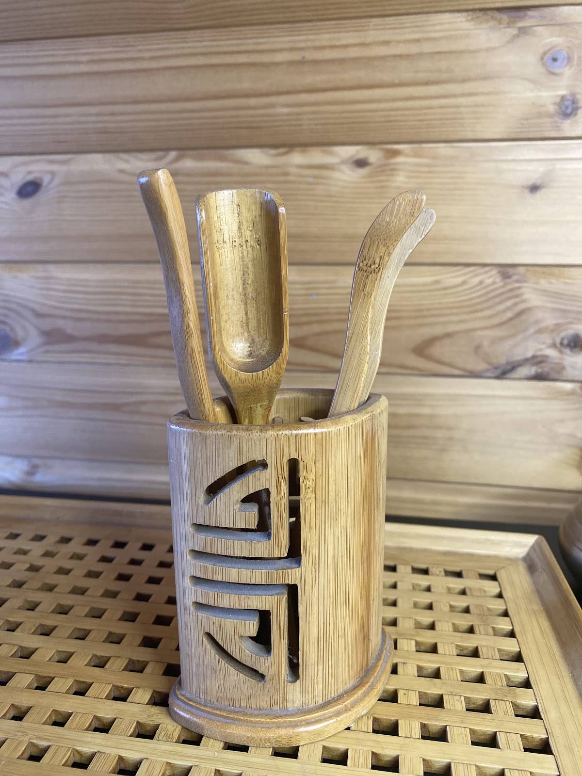 Чайные инструменты (чацзюй). Набор состоит из воронки, щипчиков, иглы, большой и маленькой ложечек, чайной кисточки. В комплекте часто продаются 3-4 предмета. Хорошо, если в нем будет хотя бы лопатка, щипчики и игла.