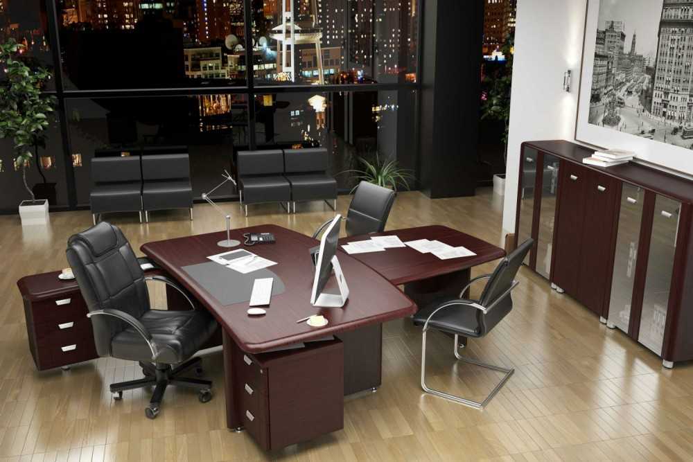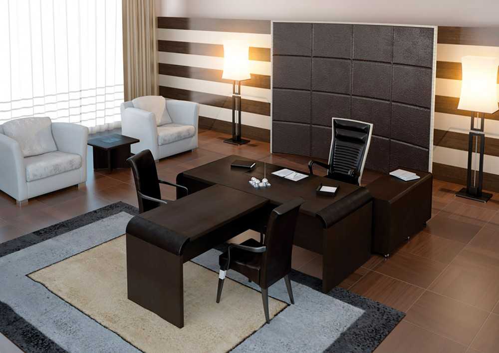 Пространство главы правления компании является уголком, куда приходят не только партнеры, но и персоны VIP. В приоритете создание презентабельного внешнего вида. Ведь по внешним очертаниям создается впечатление о материальном благополучии корпорации.