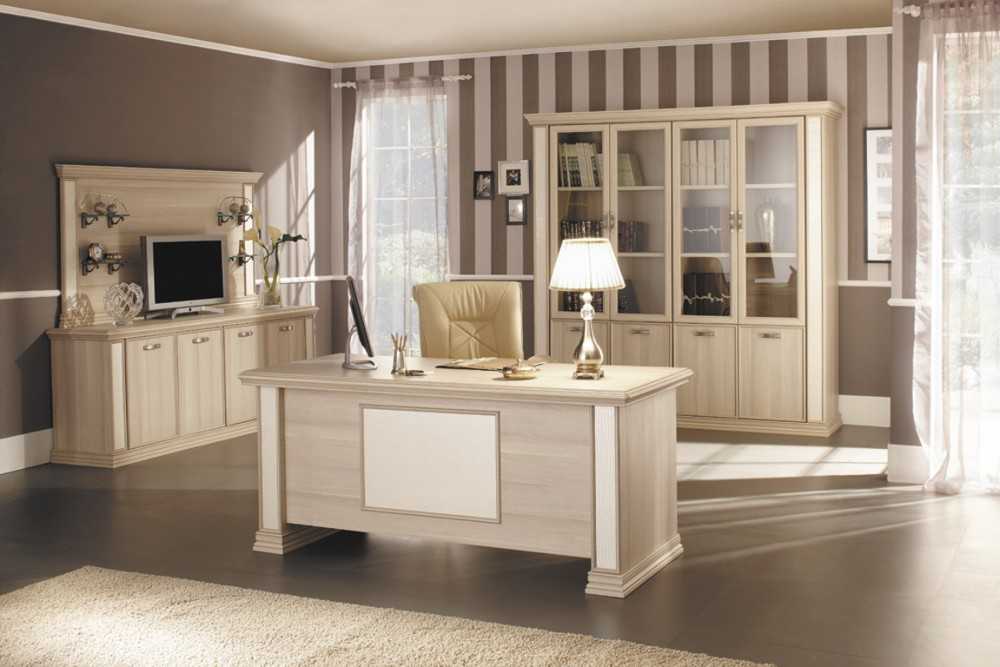 Обращают внимание при обстановке офисной комнаты на качество и эргономичность. Естественно, благородно смотрится натуральные материалы