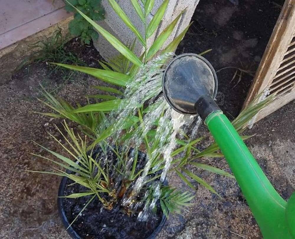 Финиковые пальмы относятся к категории влаголюбивых комнатных растений, поэтому и поливать культуру в летний период нужно достаточно часто, не менее пары раз в неделю. Для поливов используется только хорошо отстоянная вода комнатной температуры. Оросительные мероприятия выполняются после просыхания верхнего слоя.
