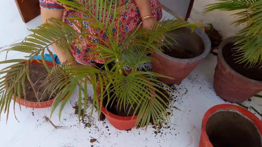 опытные цветоводы-любители, долгие годы выращивающие финиковые пальмы в условиях комнатного цветоводства, рекомендуют пересаживать культуру посредством способа перевалки корневой системы с земляным комом;