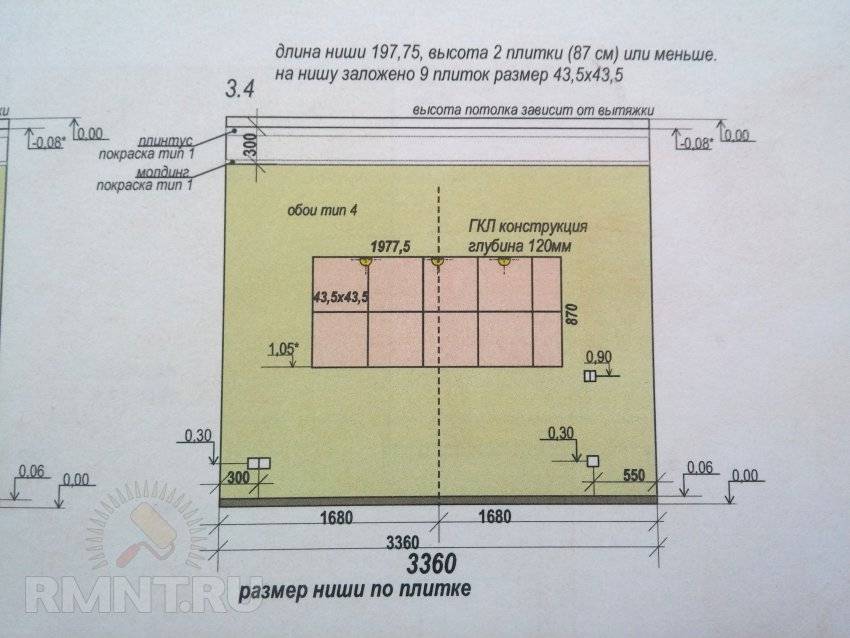 В этом мастер-классе вы найдёте подробное описание процесса устройства кухонных стен и вентиляции по готовому дизайн-проекту. Мы расскажем об особенностях монтажа фальш-стены с нишей по методу «от центра» и приведём подробные фотографии этой работы, выполненной опытными специалистами.