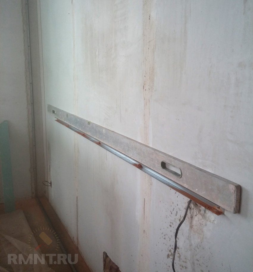 После переноса отметок на плоскость стены, начинаем закреплять направляющие. Это ключевой момент, т. к. от них будут откладываться дальнейшие размеры.
