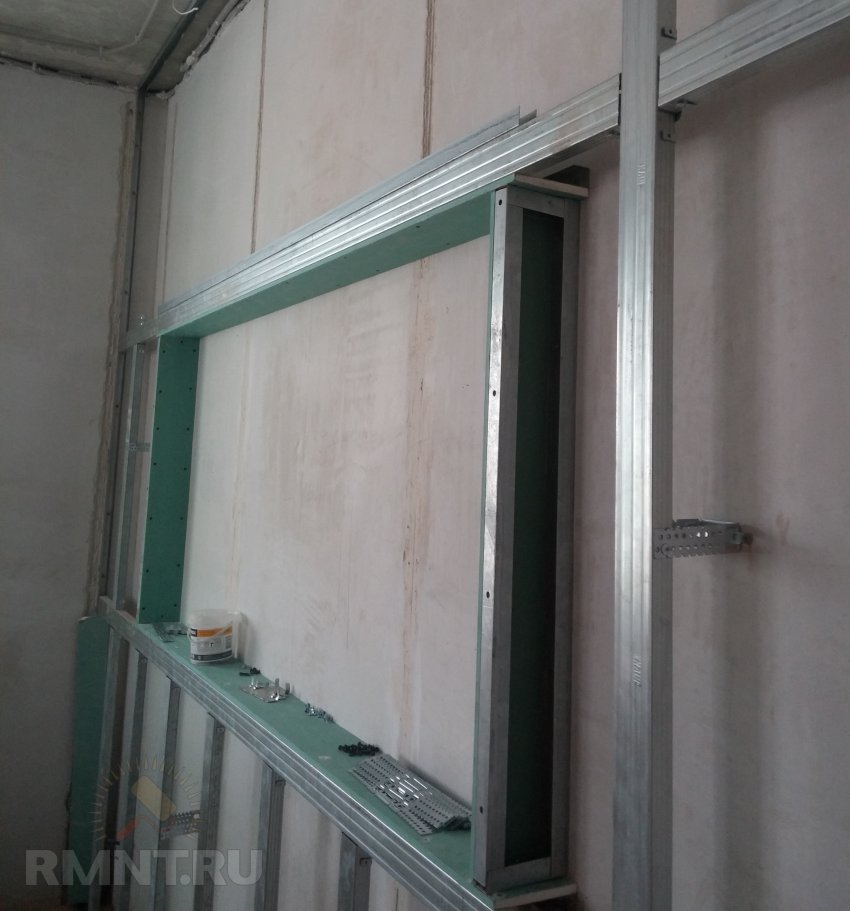 Если в вашем случае есть необходимость использовать стену для навески чего-либо, обязательно установите усиления — сдвоенные рёбра. При этом П-образные подвесы должны быть другого класса — более мощные. В дальнейшем нише можно придавать любой объёмный вид, используя различные методы отделки и декорации — плитка, обои, шторы, искусственный камень.