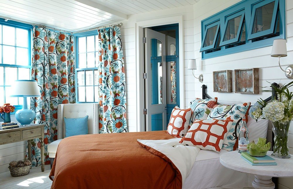 Важно правильно комбинировать не только цвета, но и фактуру, рисунок, форму. Шторы должны выделяться на фоне стен