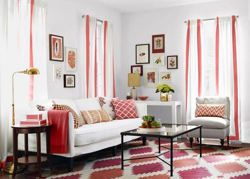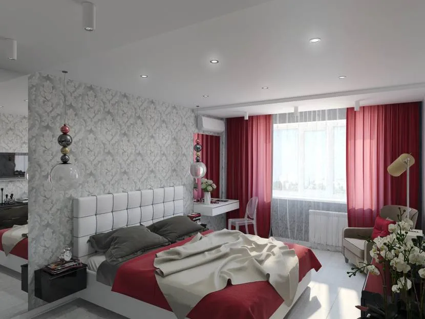 Хотя красный считается теплым, у него также есть различные подтона. Это позволяет сочетать красные шторки как с холодно-серыми обоями, так и с тепло-серыми. В первом случае следует отдать предпочтение таким оттенкам, как бардо, вишневый, фуксия, во втором случае – алому, коралловому, кирпичному, абрикосовому, персиковому и т.п.
