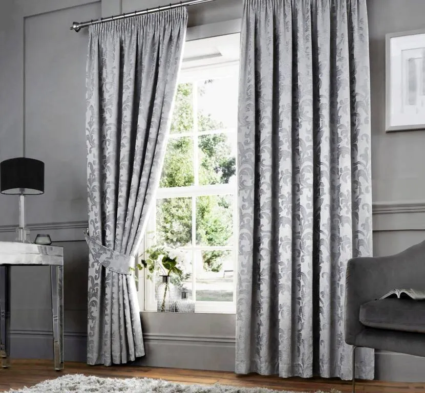 Серебристый вариант сочетается с другими глянцевыми декоративными элементами. Варианты серых штор на Textile.shop: