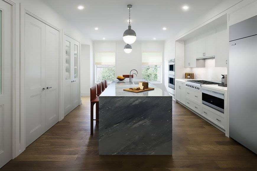 - Идеально ровная поверхность, позволяющая спрятать островную вытяжку на кухне.