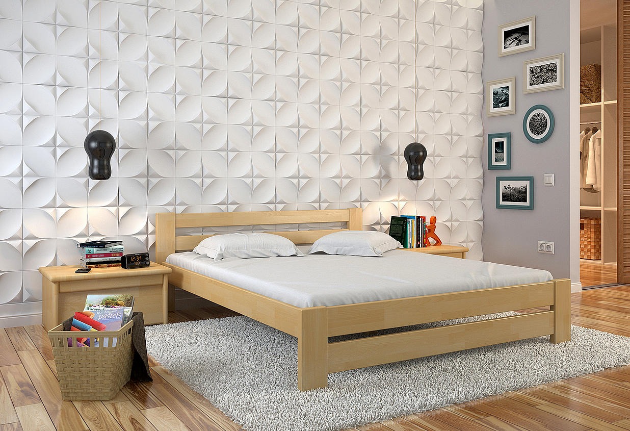Из-за низкой теплопроводности каркас из массива не остывает. Человек психологически воспринимает дерево живым, поэтому детали из материала создают ощущение комфорта в спальне. Красивый натуральный рисунок подчеркивают при помощи лака, морения или полировки. К недостаткам относят: