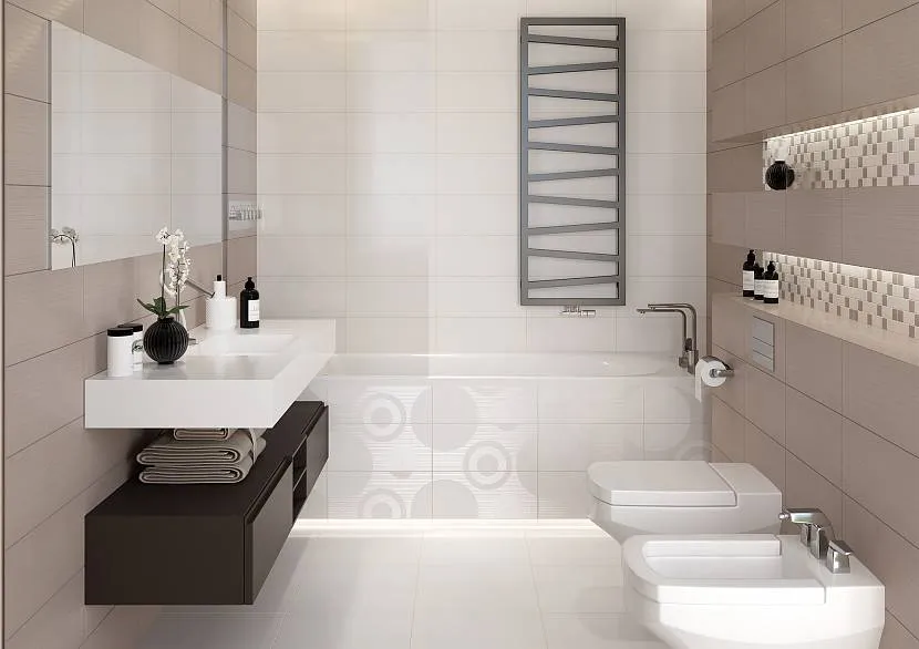 При сочетании нескольких тонов необходимо, чтоб они относились к одной цветовой гамме (теплой, холодной, нейтральной). Также плитка должна быть выдержана в одной цветовой гамме с мебелью и сантехникой.