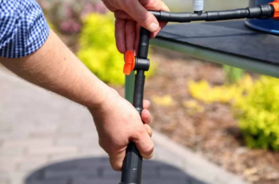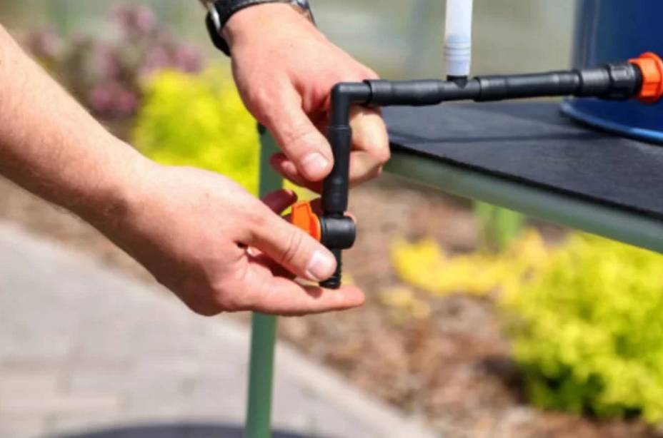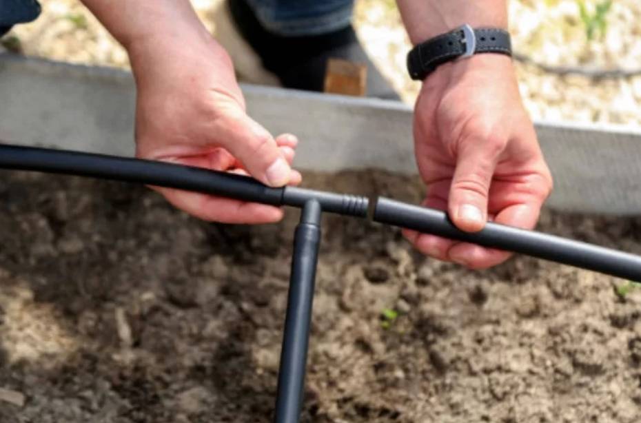 В месте разветвления линий используют тройники, а к боковым отводам подключают ленты или капельные трубки. Для их фиксации применяют переходники и металлические хомуты. Для удобства использования системы после каждого тройника устанавливают запорную арматуру.