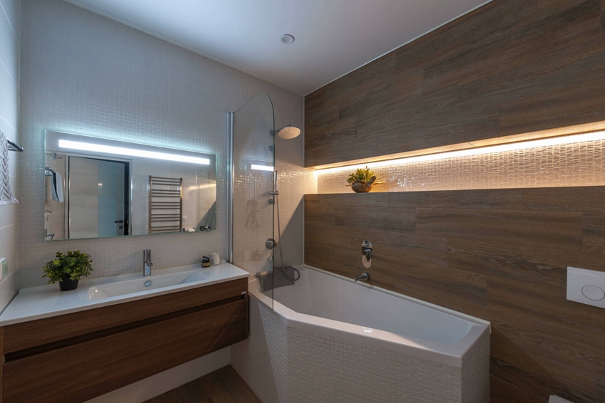 Отделка ниши в ванной из гипсокартона штукатуркой