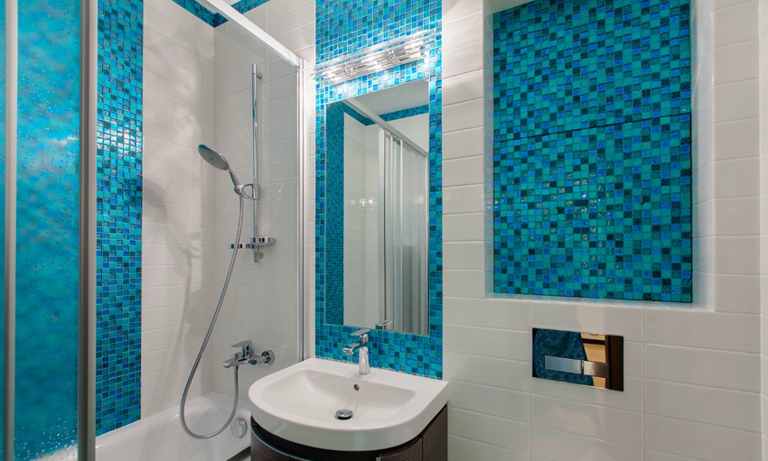 Плитка на гипсокартон в ванну выкладывается согласно выбранной схеме. Начинать следует от места, которое больше всего просматривается. Каждая плитка предварительно смачивается. Клеевой состав наносится на поверхность из гипсокартона и тыльную сторону отделочного материала при помощи зубчатого шпателя. Правильное положение изделия проверяется уровнем. Следующая плитка укладывается аналогичным образом.