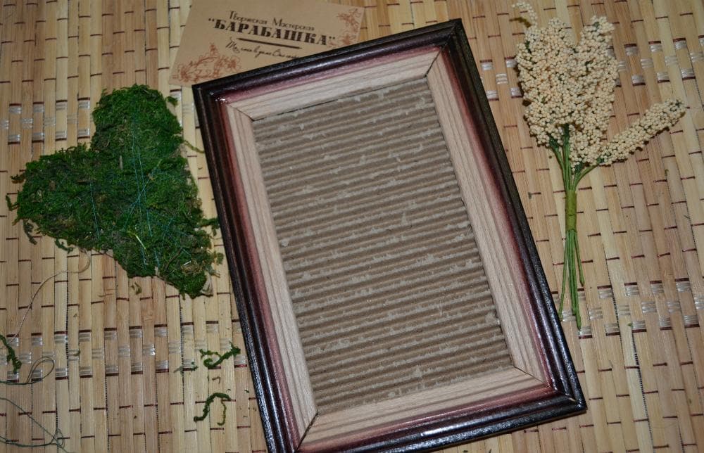 Берем заготовку картона в форме рамки и отрываем верхний слой. Оставляем только гофрированную часть.