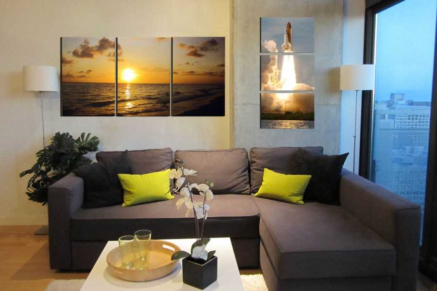 Модульная картина в гостиной может быть центральным элементом комнаты