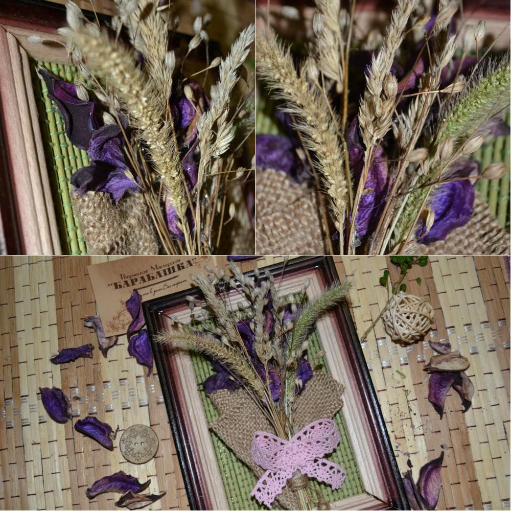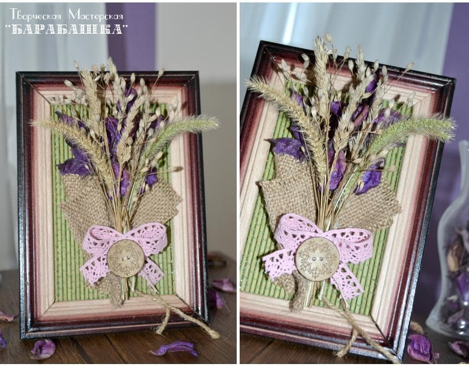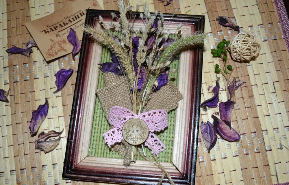 Из сухоцветов собираем букетик и завязываем его шпагатом.