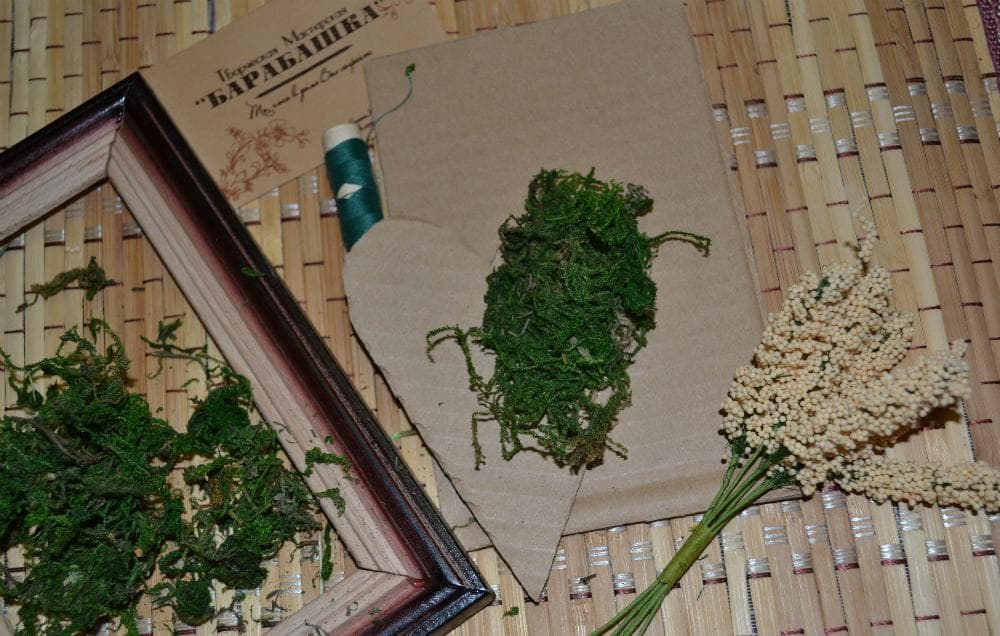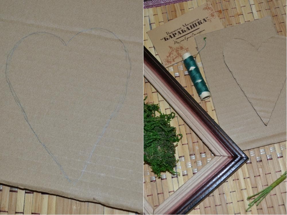 Обматываем сердце с мхом нитью для лучшей фиксации.