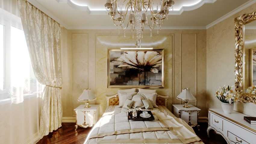 В классическую спальню может внести дисгармонию пластиковая рама или багет из металла, но они уместны в современном интерьере (см. Интерьер спальни в современном стиле: разновидности и характеристики).