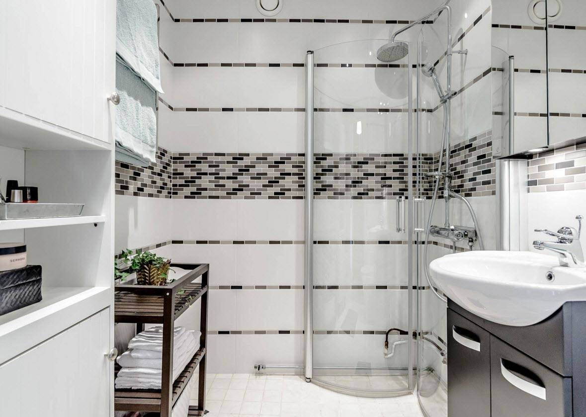 Важно отметить, что использование белой плитки на стенах и полу помещения нежелательно. Интерьер комнаты будет ассоциироваться с медицинским учреждением