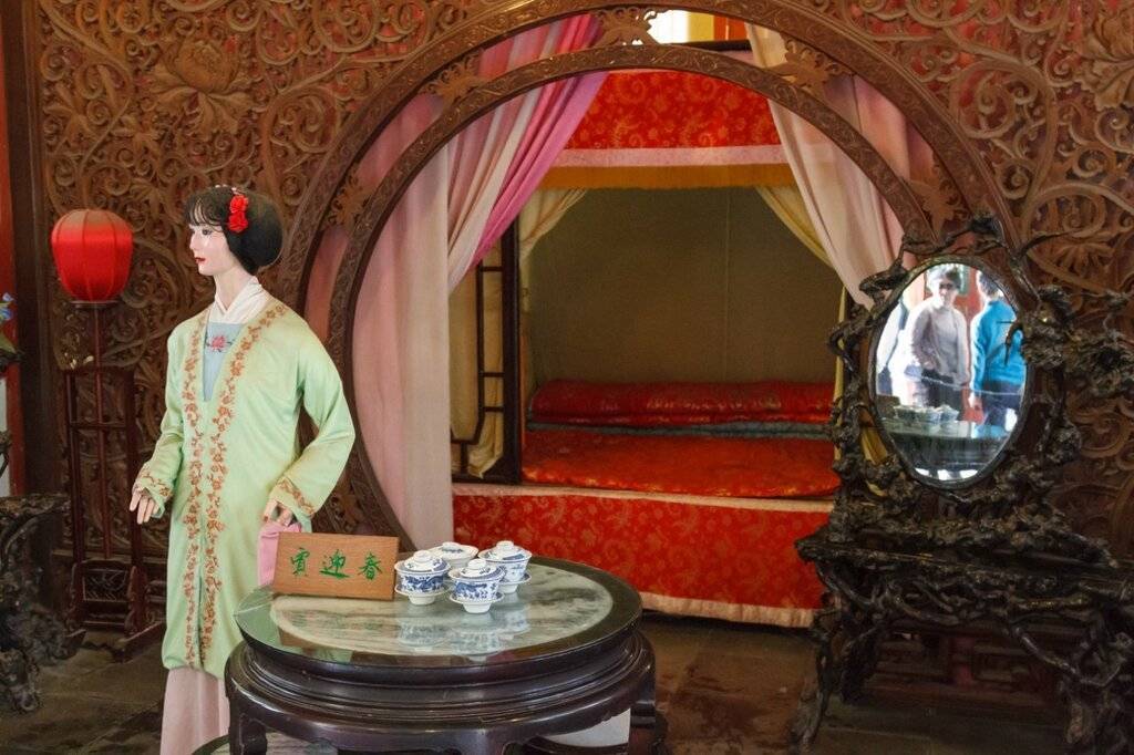 Спальни в китайских домах занимали самую дальнюю часть помещения, куда не допускались посторонние. Кровати в богатых домах часто представляли собой своеобразную комнату в комнате — имели собственные стены, потолок, которые украшала тонкая резьба, рисунки, шелковые ткани. Кровати могли быть как прямоугольные, так и круглые.