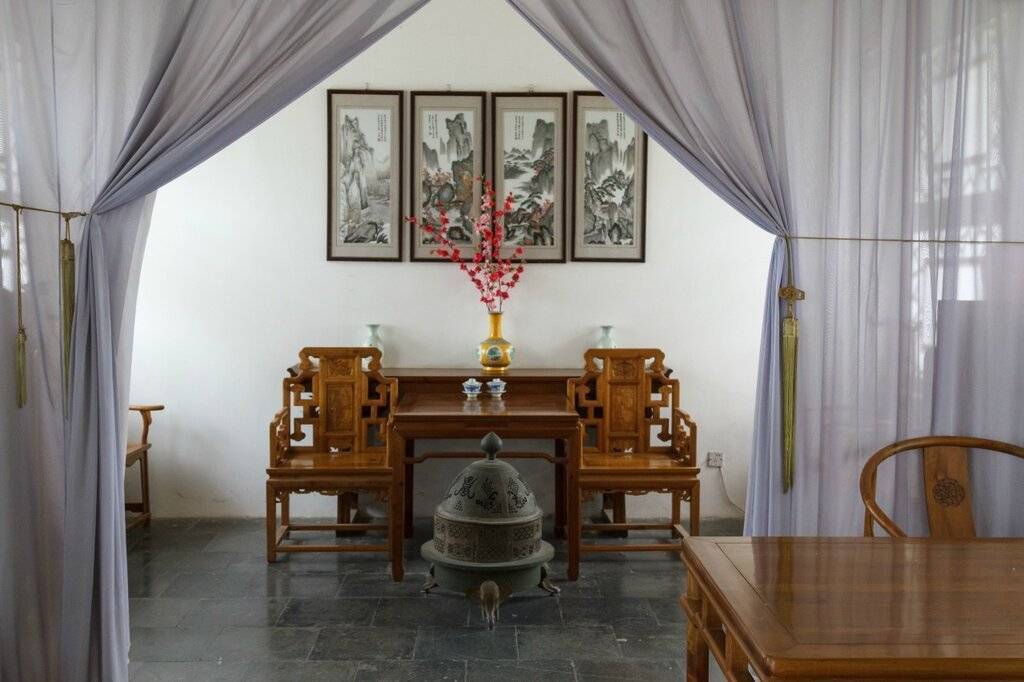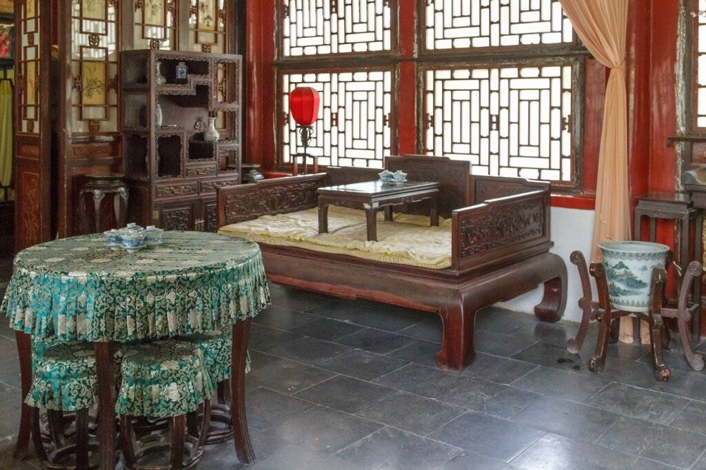 Широкие диваны-лежаки с маленьким чайным столиком на низких ножках также были частым предметом мебели в китайских домах.