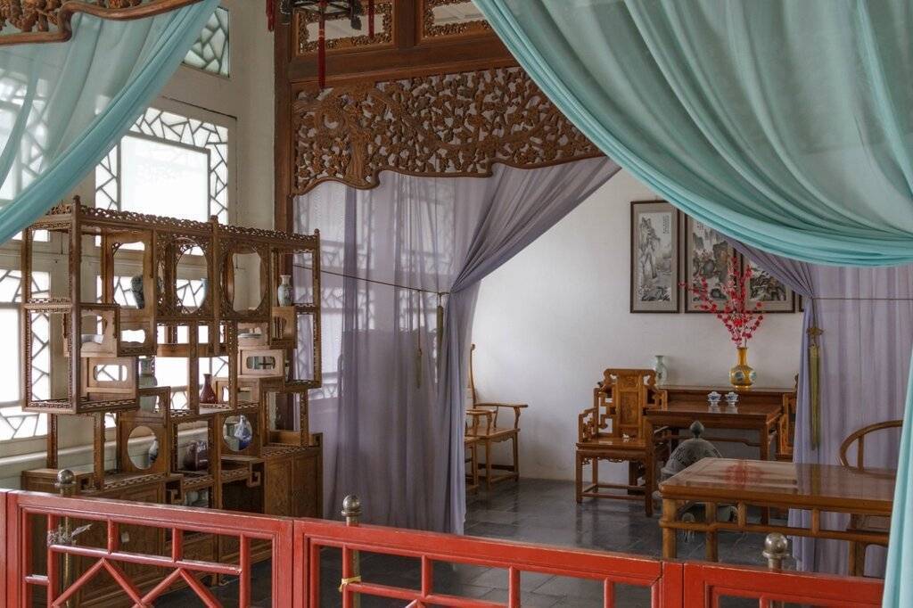 Обращает на себя внимание изысканность отделки, внимание к деталям. Мебель изготавливалась из бамбука, древесины темных пород
