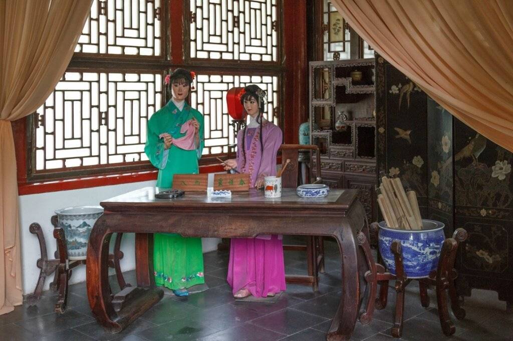 В кабинете обязательно присутствовал большой стол, на котором стояли «четыре сокровища кабинета» 文房四宝 вэнь фан сы бао — бумага, тушечница, тушь и кисти.