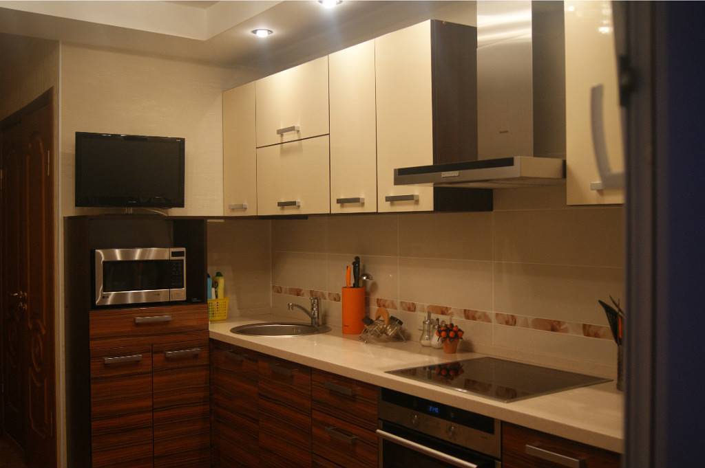 В таких случаях в рабочей зоне будет уместно установить точечные светильники. Однако главное не переборщить, они могут смотреться пестро и наляписто, особенно если кухонный гарнитур имеет глянцевую поверхность.