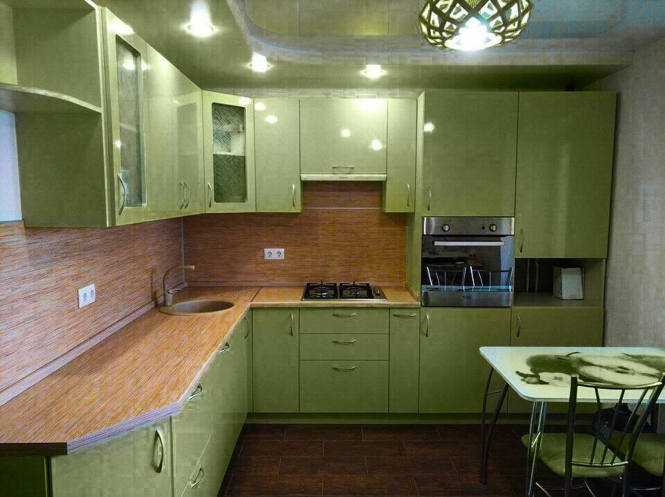 Для маленького кухонного помещения идеально подойдет гарнитур с глянцевыми фасадами. Блестящие поверхности обладают способностью отражать световые лучи и за счет этого визуально расширять пространственные границы.