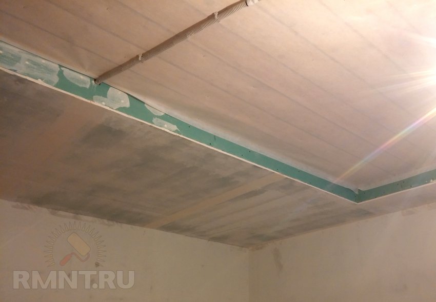 - зашпаклевать места вхождения саморезов и швы между соседними гипсокартонными плитами;