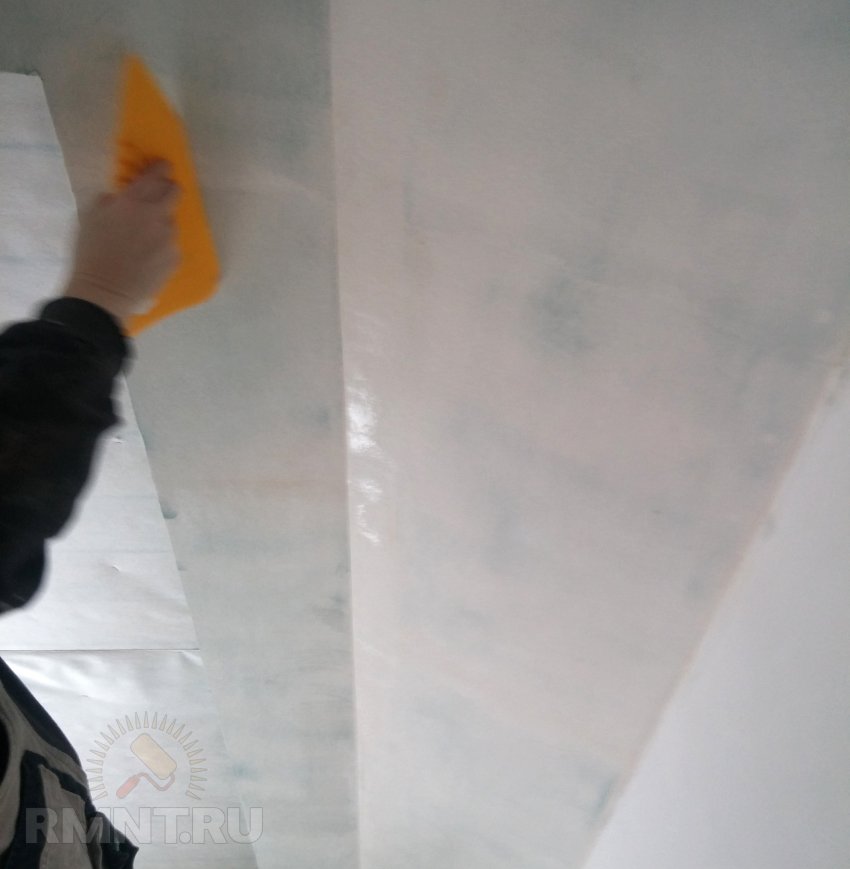 Поклейка стеклохолста на потолок осуществляется в определенной последовательности: