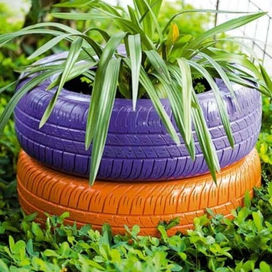 Самый популярный материал для оформления – старые покрышки. Приложив определенную фантазию, можно превратить грубый исходный материал в необыкновенно красивую композицию. Не стоит ограничиваться банальным окрашиванием шин в разные цвета. Из этого пластичного материала можно делать стильные скульптуры, имитировать на его поверхности камень и мох.