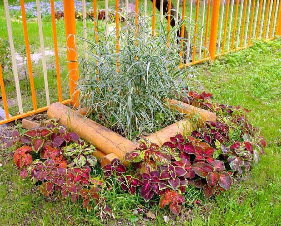 Для создания клумбы могут использоваться и те вещи, которые просто лежат на улице. Яркий тому пример – ветхое бревно. Возьмите его, вырежьте продольное углубление и высадите туда цветы (детальнее этот вариант будет описан ниже).