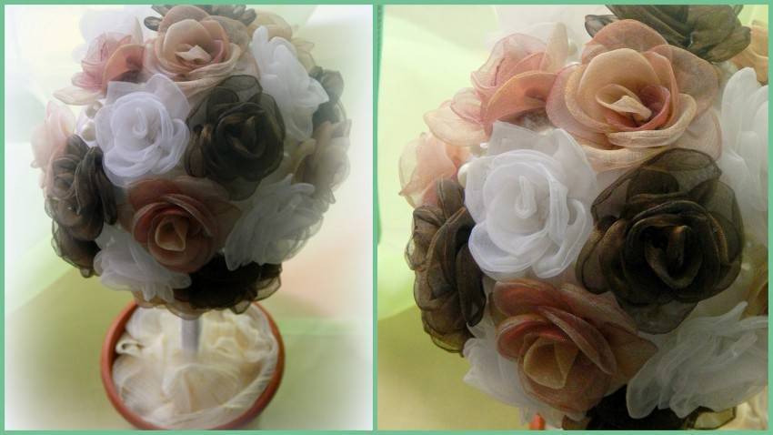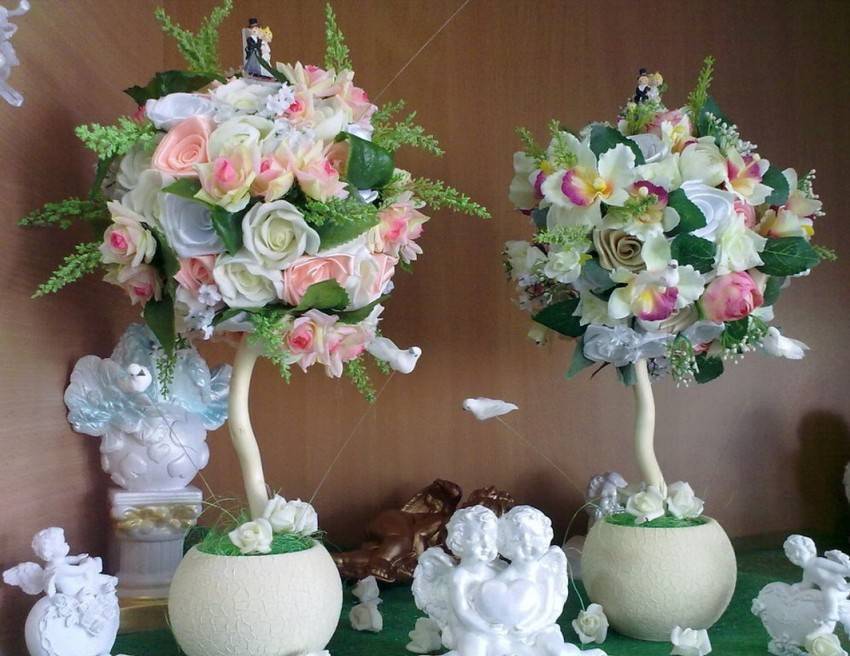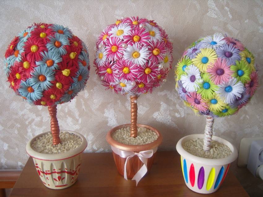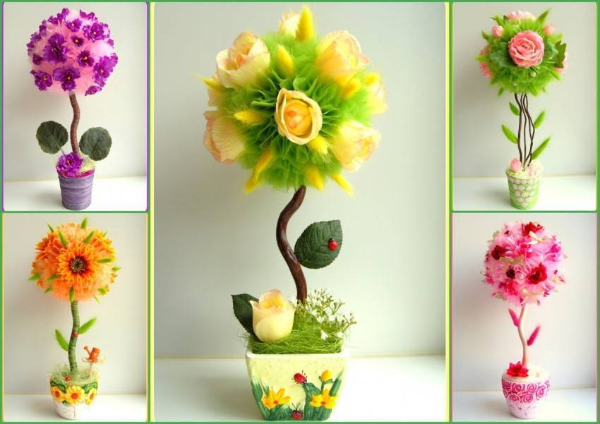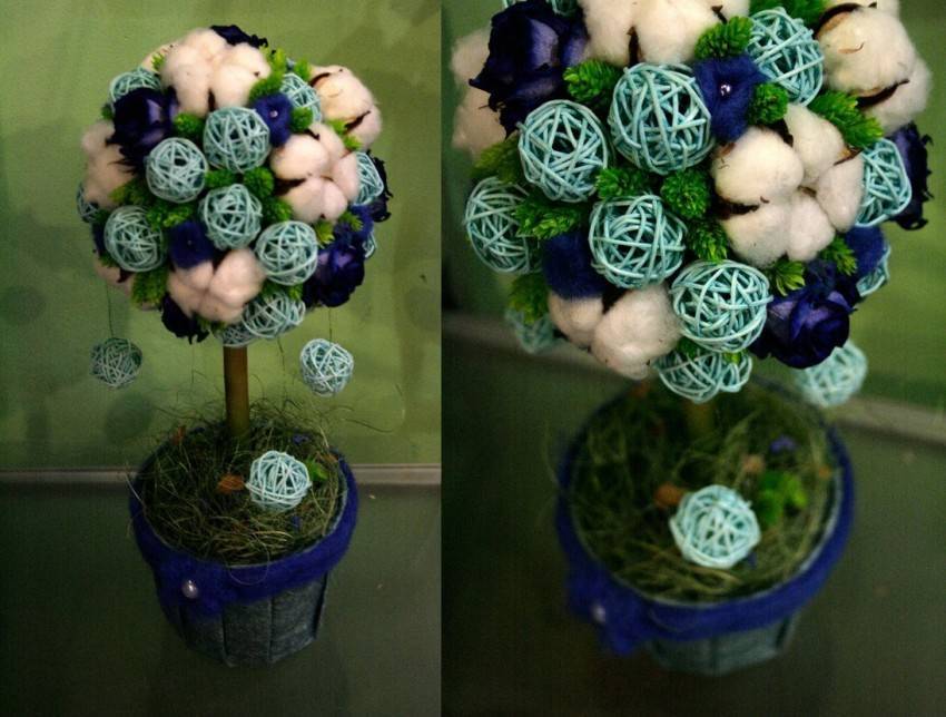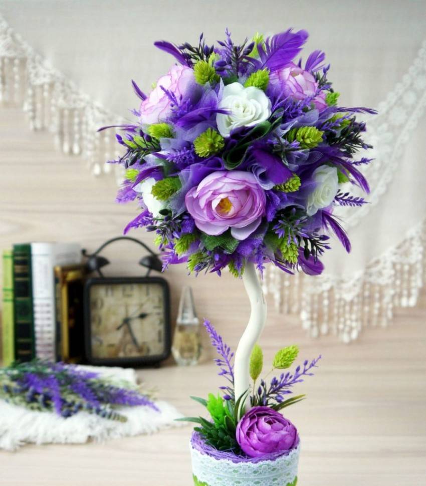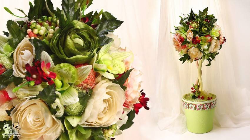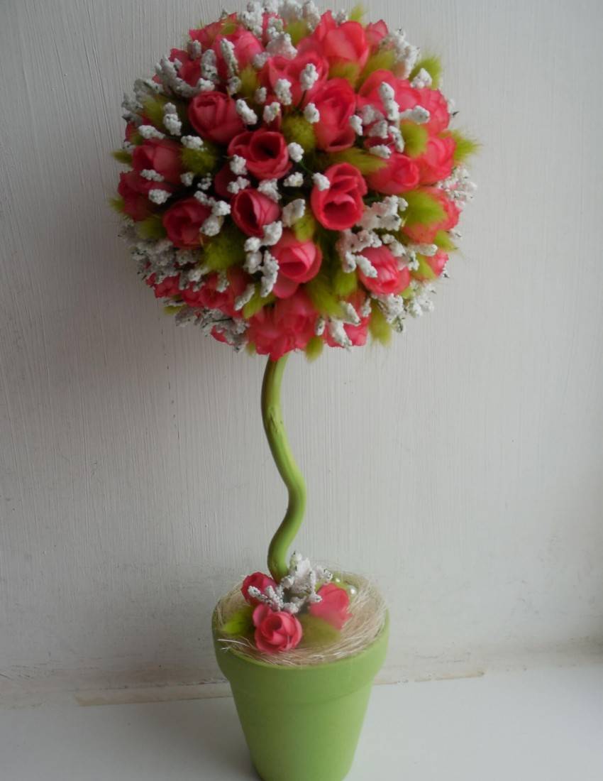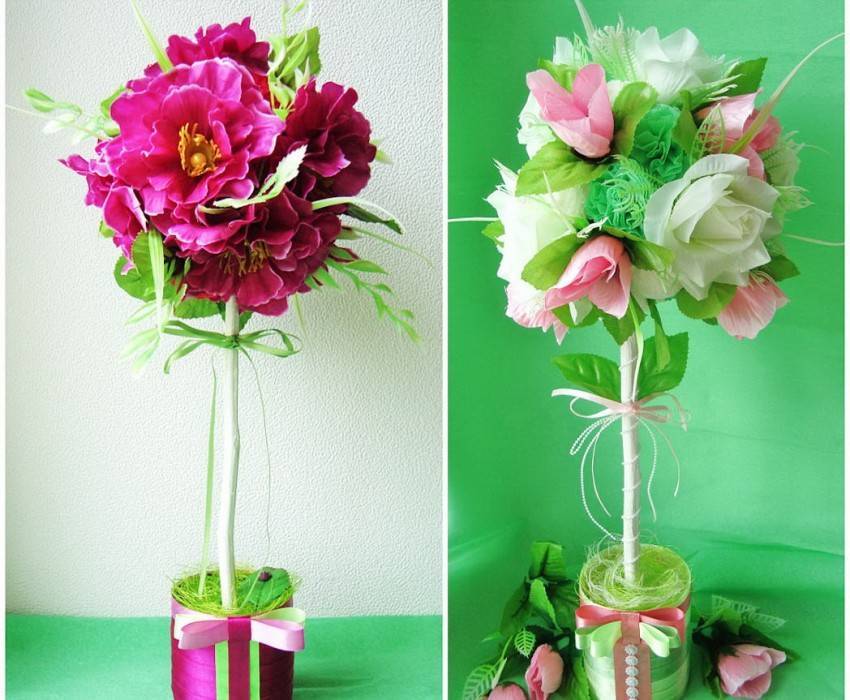 Ниже представлены идеи оформления топиария искусственными цветами, которые вы сможете реализовать с помощью нашего мастер-класса.