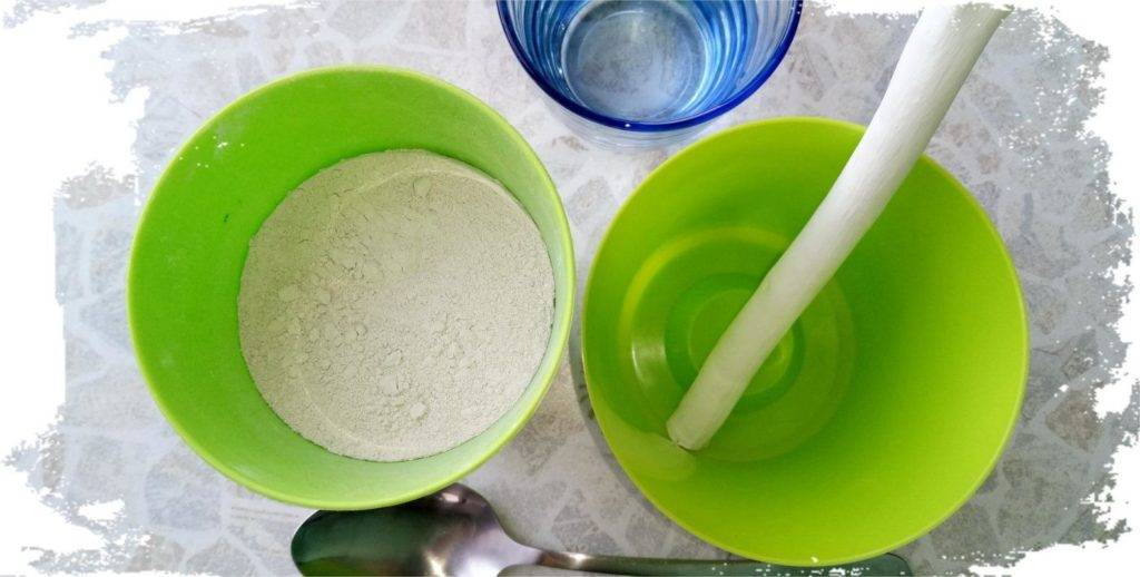 Второй способ позволяет добиться результата быстрее, но подходит только для широких и неглубоких цветочных кашпо. Гипс или алебастр засыпается до уровня «чуть ниже необходимого» и в него очень постепенно, небольшими порциями доливается вода, одновременно происходит замешивание. Полученная масса не должна быть жидкой — иначе ствол не будет устойчив. Время высыхания массы — 3-4 часа.