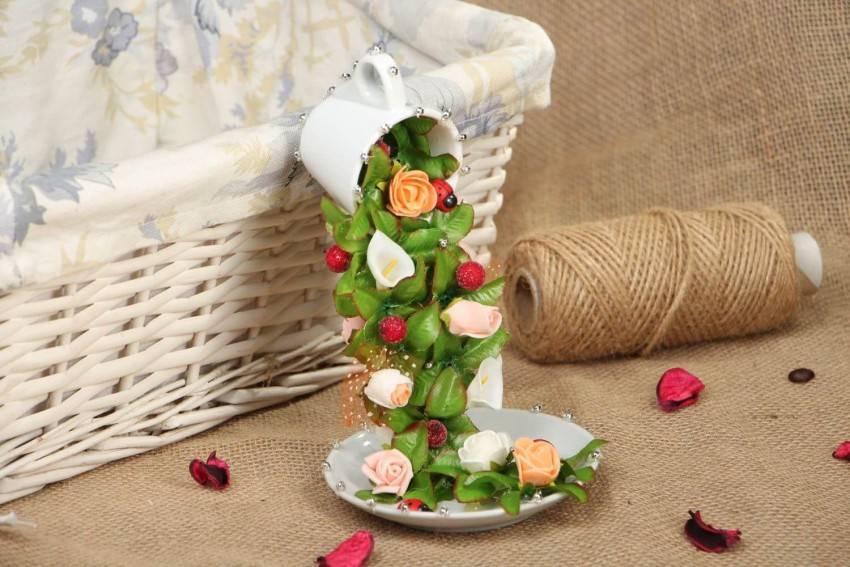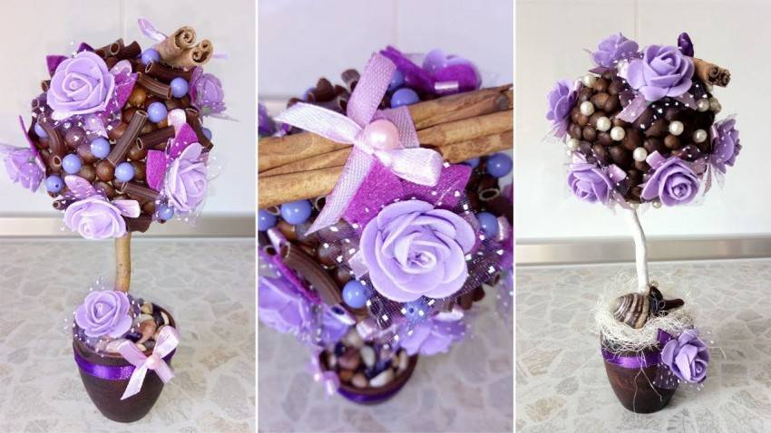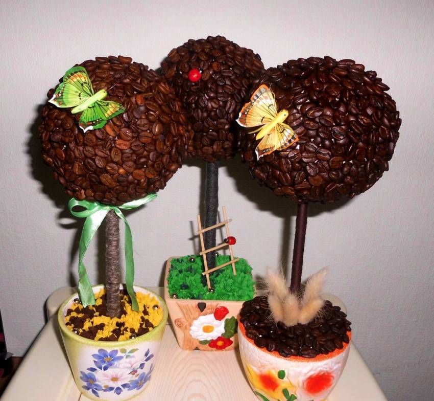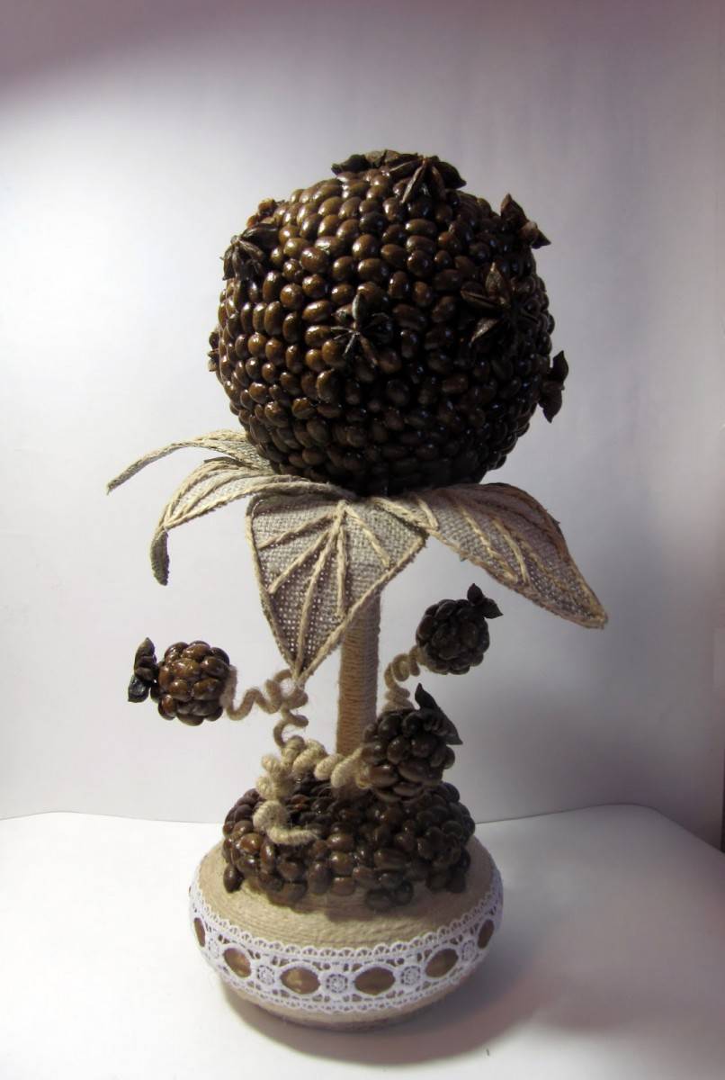 Для поделок в стиле топиария вместо кофе можно использовать и другие элементы. При этом техника и инструменты остаются неизменными.